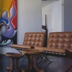 "Mix: a "Lily" chair, an Africa stool and chairs by Mies Van Der Rohe"